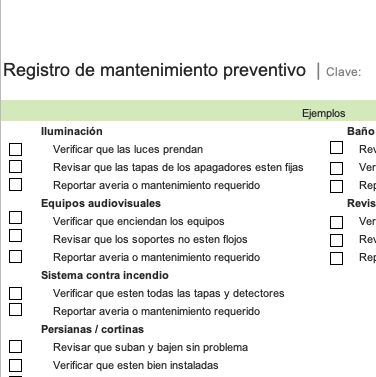 Registro de mantenimiento de equipos y mobiliario