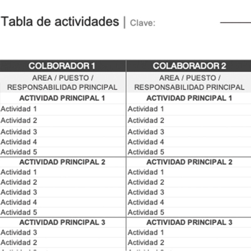 Tabla de actividades