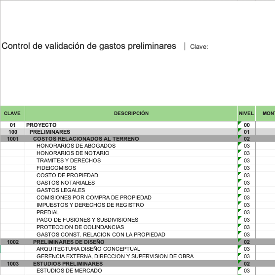 Control de validación de gastos preliminares