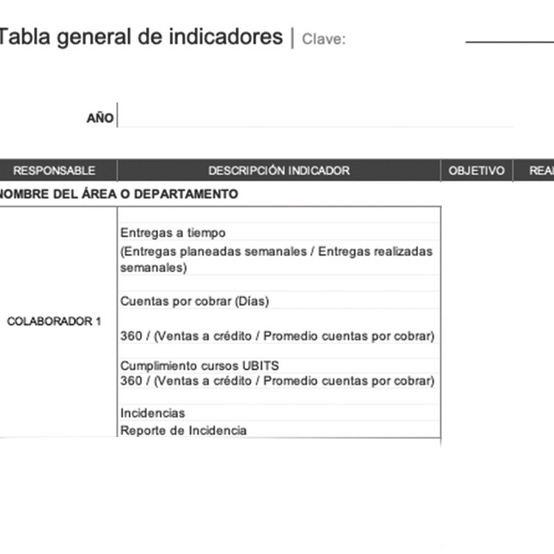 Tabla general de indicadores