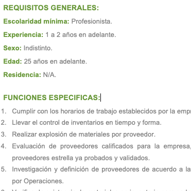 Gerente de compras en desarrolladora