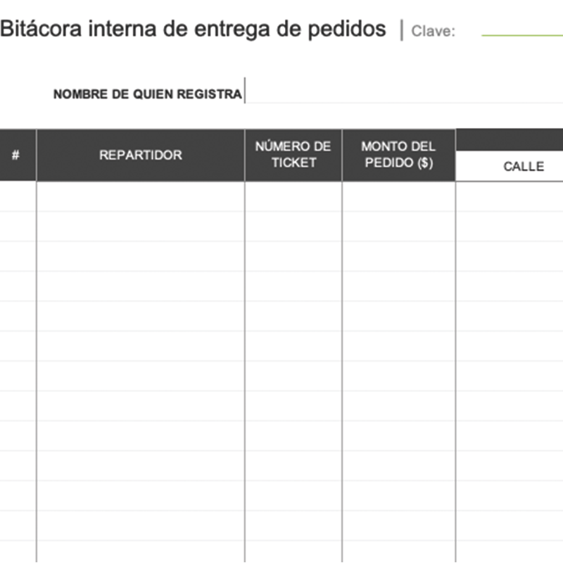 Este formato te ayudará a visualizar todos los aspectos para la entrega de un pedido, considerando el nombre del repartidor, número de ticket, monto y dirección de entrega.