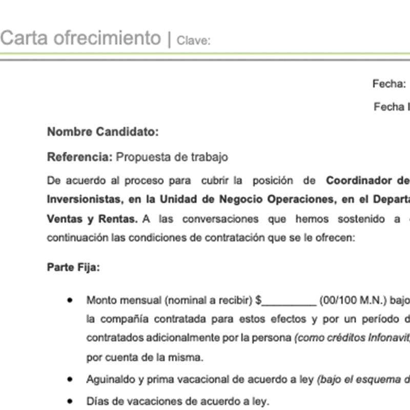Este formato te permitirá realizar de forma oficial la propuesta de puesto de trabajo, económica y de beneficios a los futuros integrantes de la organización.