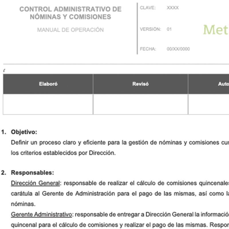 Esta política te permitirá establecer lineamientos para realizar el cálculo de las nóminas y las comisiones, así como la expedición de sus comprobantes y la forma de dispersión.