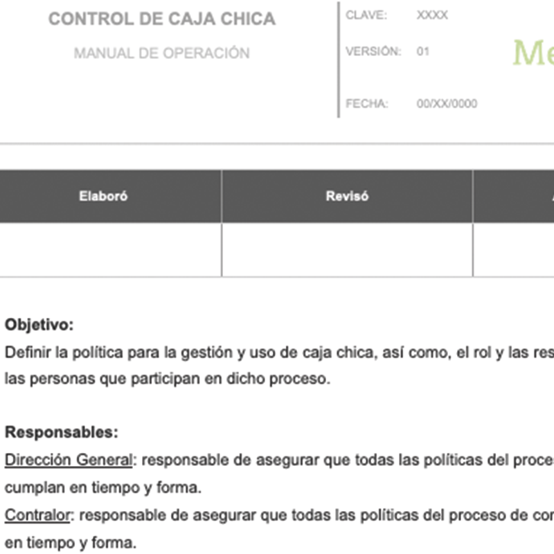 Esta política te ayudará a definir los lineamientos para llevar a cabo la gestión y el uso de la caja chica, así como, el rol y las responsabilidades de los involucrados.
