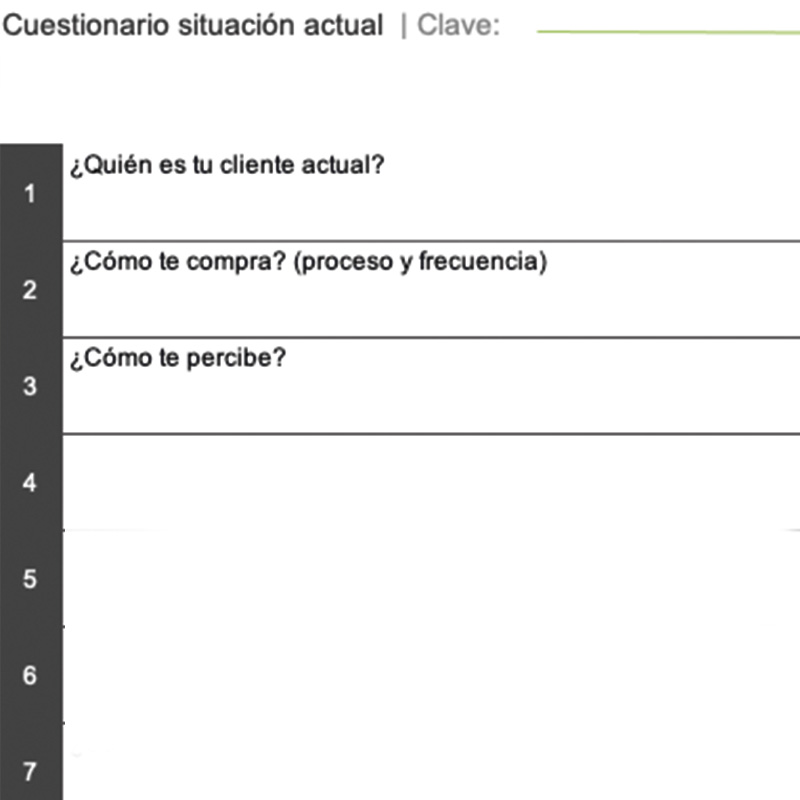 A partir de este formato podrás identificar tu estado actual en cuanto a clientes, esfuerzos de venta y mercadotecnia, con el objetivo de tomar las decisiones adecuadas para mejorar las condiciones de la empresa.