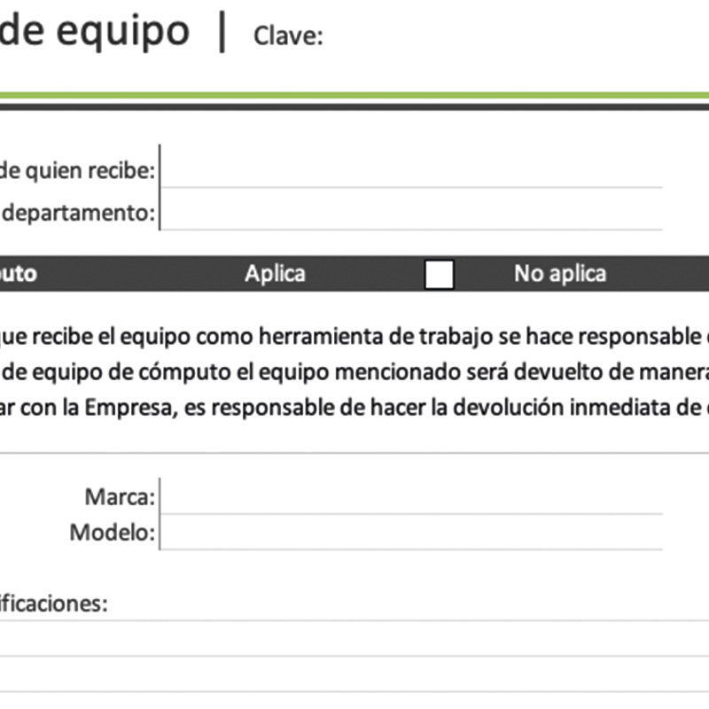 Este formato te permitirá contar con una evidencia documental para asegurar la asignación y entrega de equipo de cómputo a un empleado.