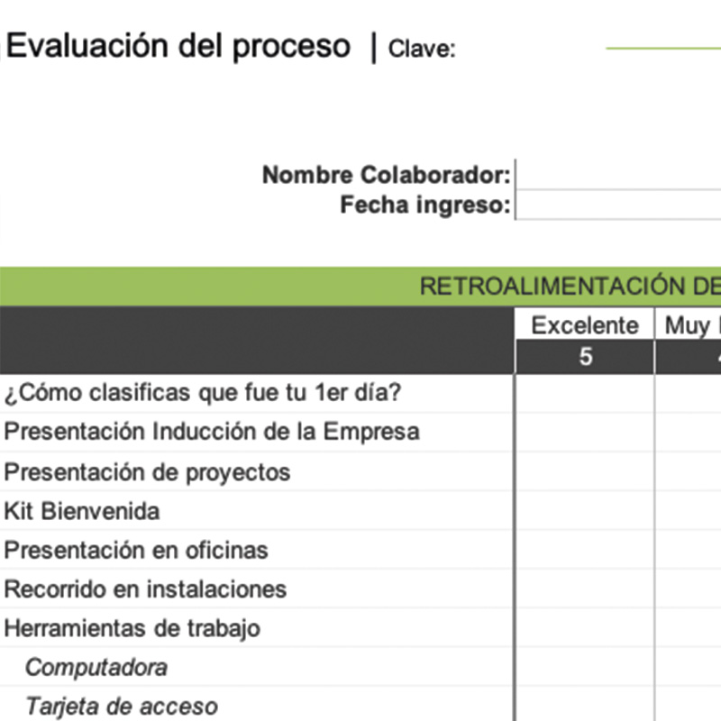 Con este formato podrás medir el nivel de satisfacción de un nuevo colaborador durante su procesos de onboarding a la empresa.