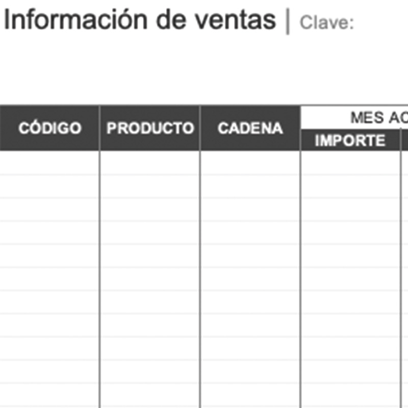 Este formato te permitirá concentrar en un solo lugar toda la información de ventas generadas en los últimos meses, considerando los precios, importes y unidades vendidas.