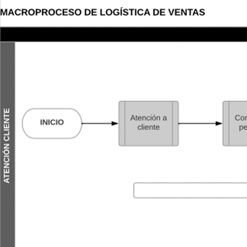 Este diagrama te permitirá identificar los procesos que conforman la logística de ventas, desde la atención inicial al cliente y hasta el servicio postventa de soporte y atención a quejas.