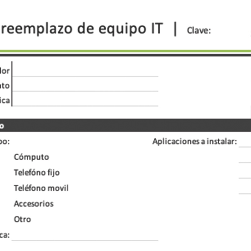 A través de este formato tus áreas internas podrán solicitar el cambio y reparación de un equipo de cómputo al área de sistemas.