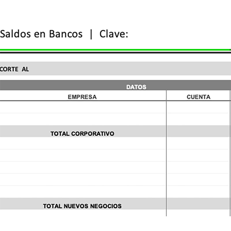 Este formato te permitirá tener un control sobre los saldos de acuerdo con los principales movimientos realizados recientemente, organizados por categoría.