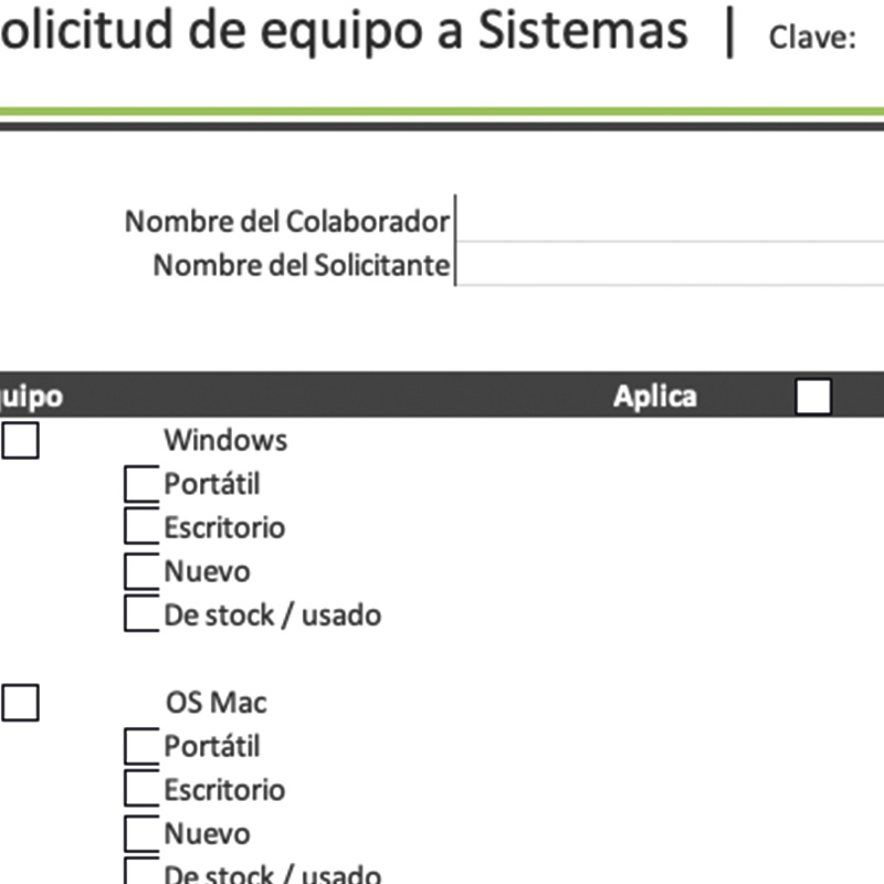 Este formato te ayudará a realizar las solicitudes internas de equipo informático y software al área de sistemas.
