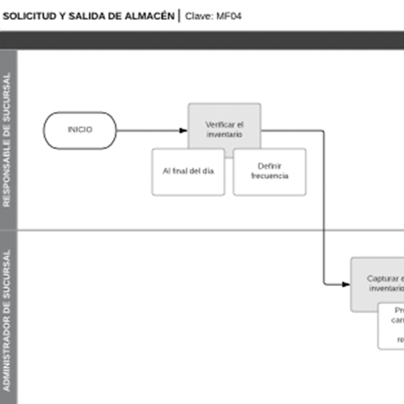 Este diagrama te permitirá establecer las actividades necesarias para la planeación, previsión, solicitud y envío de productos/insumos, con el objetivo de surtir diferentes puntos de venta.